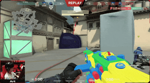 他習慣用自己的獨特身法和英雄“獵梟”的探測技能閲讀對手信息,獲知敵人位置後,就一邊撤回掩體,一邊用奧丁掃射,用機槍的持續火力和對障礙物的強大穿透力碾碎敵人。
