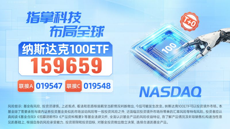 納斯達克100ETF(159659)緊密跟蹤納斯達克100指數,高效佈局海外優質科技股,並設有場外聯接基金(A類:019547,C類:019548),可供場外投資者選擇。