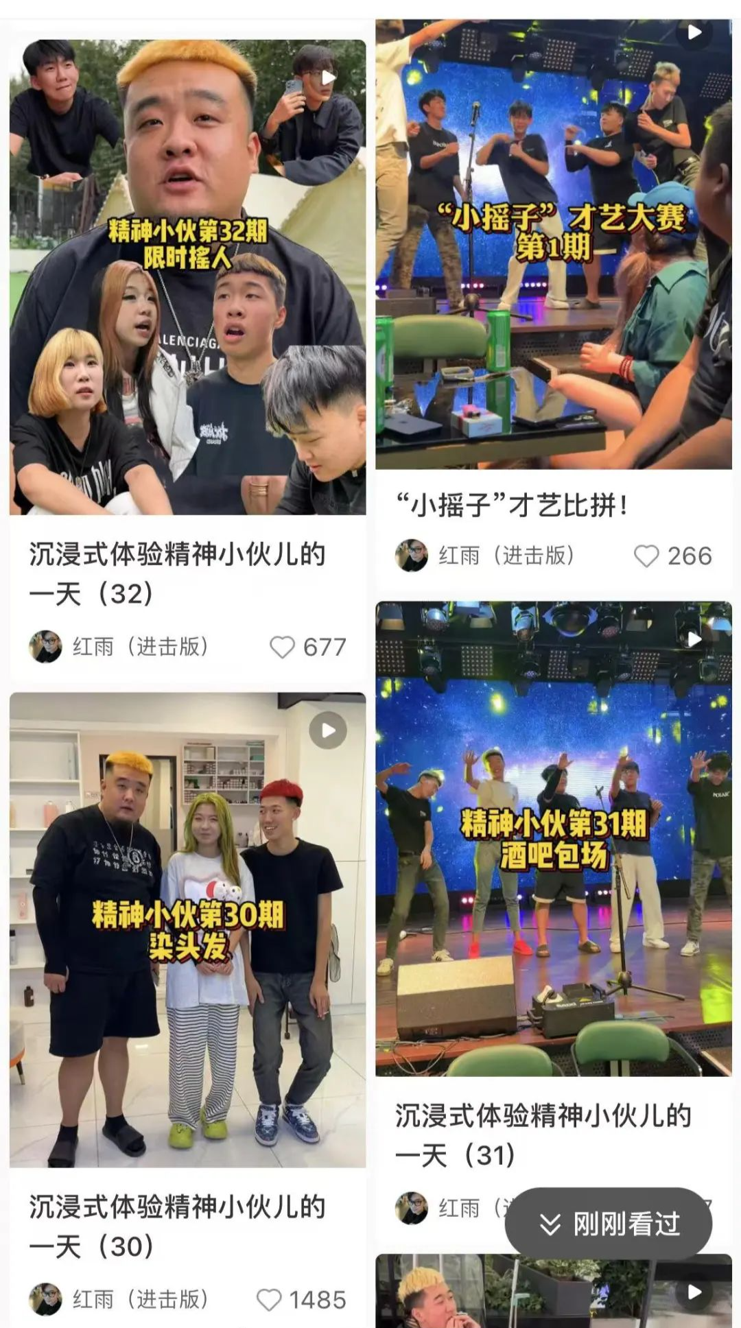 不知誰先想出了這個好主意,博主們開始努力耕耘“搖子”這塊廢棄的黑土地,試圖開墾出一畝肥田,“體驗精神小夥的一天”就此成了他們的通用標題。