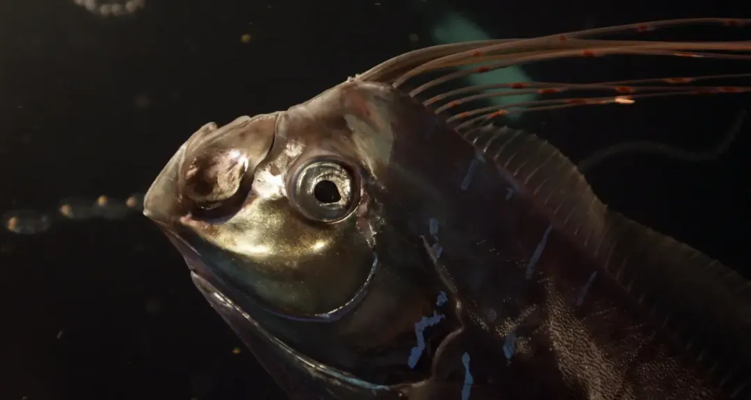 在未來的解剖中,科學家將檢查皇帶魚的眼球是否具備在黑暗中導向的能力,從而推斷它們平時主要在海水的哪個深度活動|圖源:Saint Thomas Productions