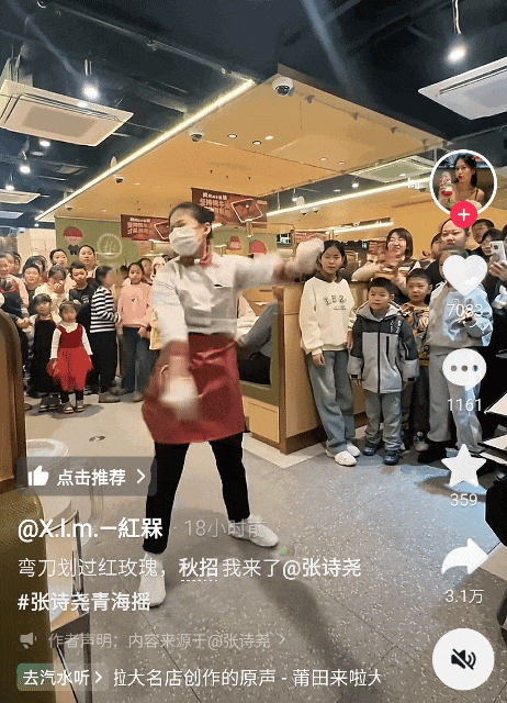 也有火鍋店的店員,搖起來一股子拉丁味,彷彿有一根看不見的麪條在翻飛;