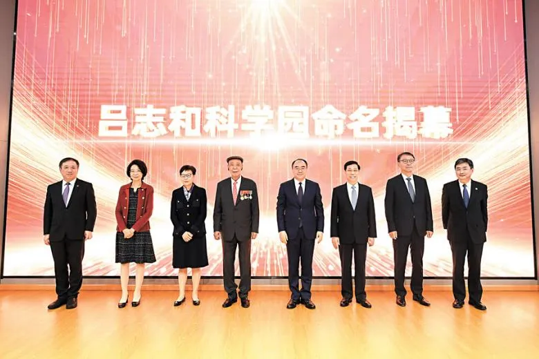 2023年,呂志和(左4)出席上海交大“呂志和科學園”命名揭幕儀式