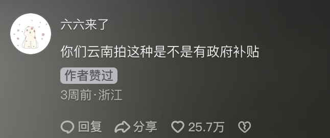 短視頻世界裏的雲貴川是和東北人一樣神奇的存在,他們彷彿天生掌握了流量密碼,以至於評論區帶着好奇與嫉妒地問出了那句:你們搞抽象是有國家補貼嗎?