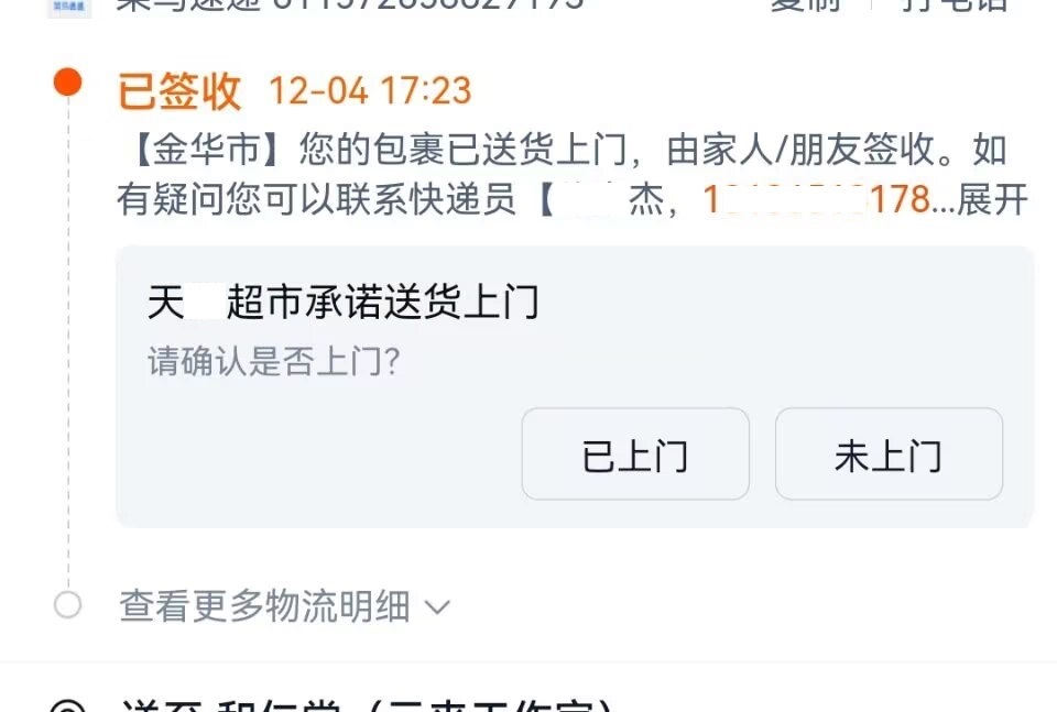 我很快意識到,是“未上門”的快遞員打電話上門來興師問罪了,這着實讓膽小的內人驚嚇不輕。我告訴他,首先,我沒有不接聽電話,不然怎麼能夠及時領受他的這番緊迫詢問;其次,包裹被存放在代收點之時,疑似曾接到一個電話,號碼雖是承接業務的快遞公司服務號,但是接通後無人應答,我只得掛斷;第三,我向超商平台提交反饋,而不是發起投訴。