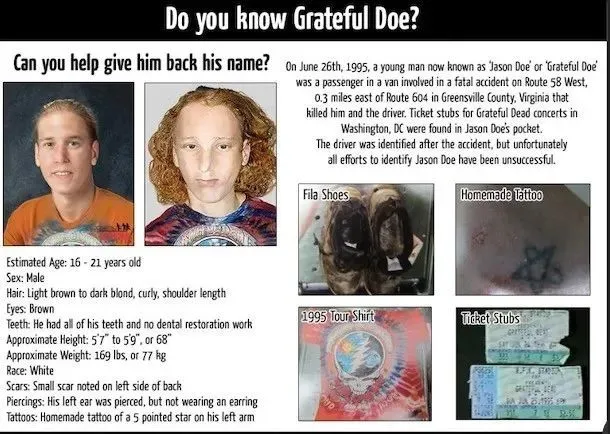 此後周圍人再也沒有Callahan的任何消息,他唯一留下的線索,只是撥打一個1-900開頭號碼的電話,這個號碼是老牌搖滾樂隊“感恩至死”的粉絲熱線。