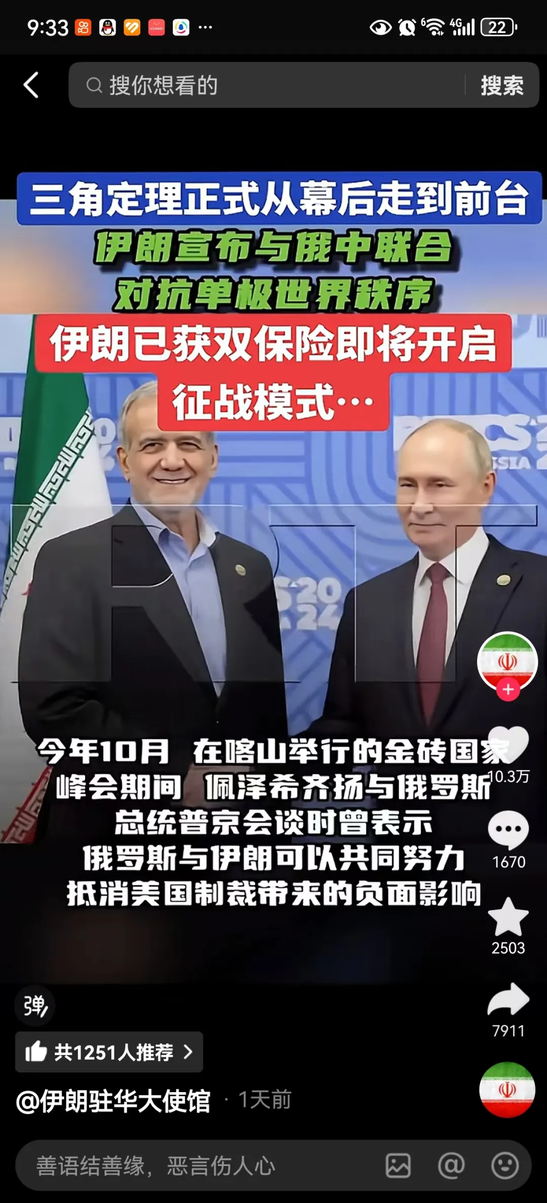 我就想説,伊朗啊,你真不用急,你還可以繼續等,你急啥呢,這個時候想拉人淌渾水?