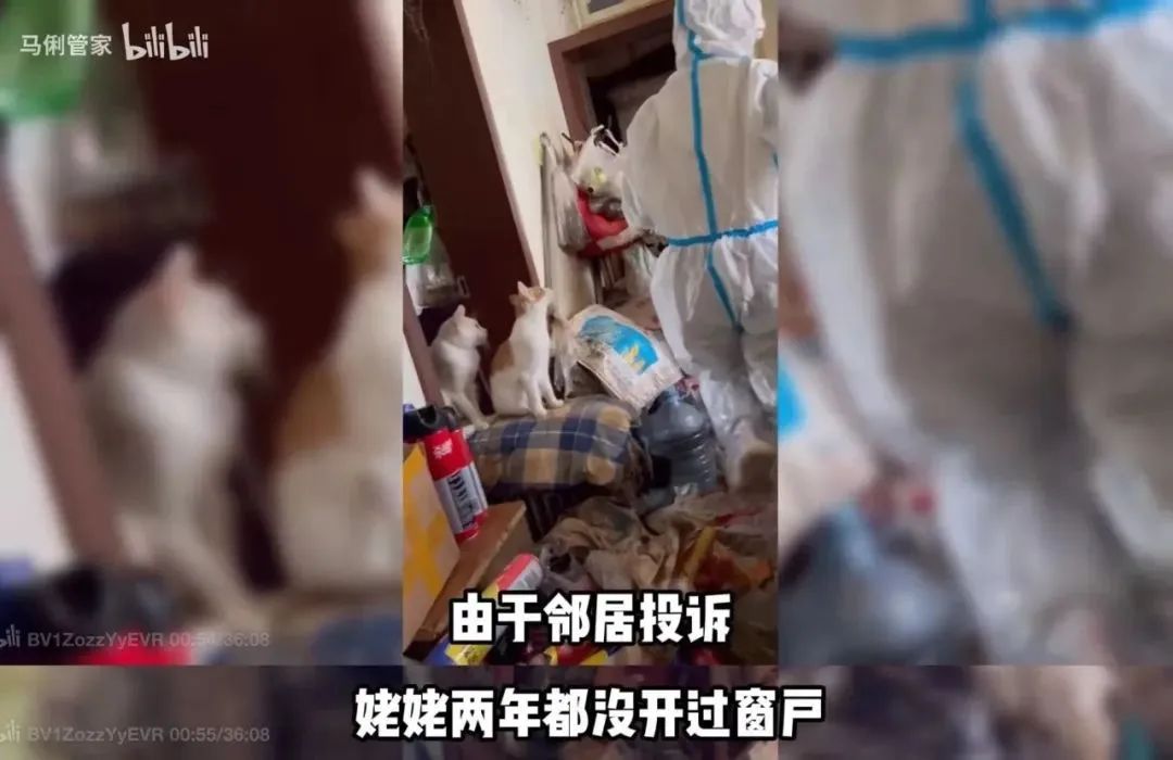 由於被鄰居投訴,**她們的姥姥兩年都沒有開過窗户,**家裏成堆的垃圾、蛆蟲,再加上十幾只貓狗,氣味可想而知。