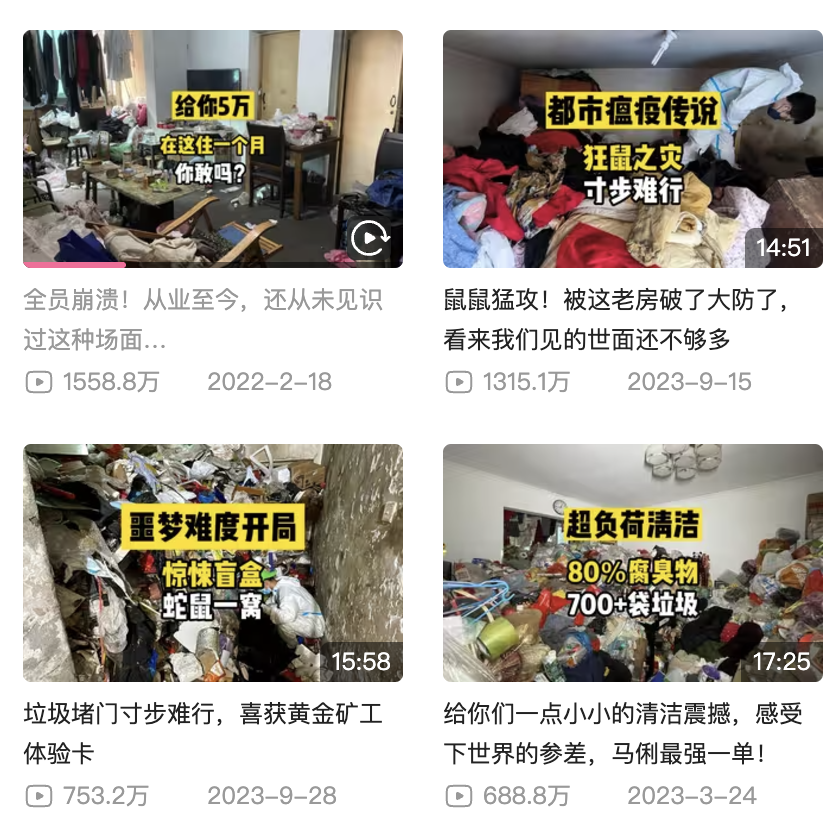 **動輒就超千萬播放的視頻都是網友們的下飯搭子。**只有你想不到的包漿垃圾房,沒有他們遇不到的奇葩客户。