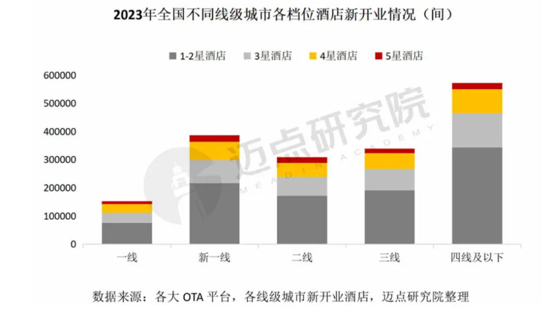國內的另一連鎖巨頭錦江酒店,據其2023年年報顯示,其在三線以下的酒店盈利佔比佔到了企業總營收的75%。