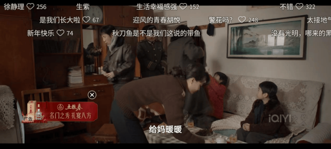 藉助這個場景,“五糧春”這類白酒品牌走入消費者的視野,無聲地提醒着消費者“選我”。就這樣,在不打擾觀看體驗的情況下,將自己與温馨聚餐、歡樂過節聯繫在一起,完成了對心智的佔領。