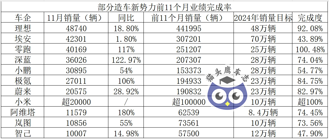 11月了,造車新勢力有誰完成了銷量目標?_風聞