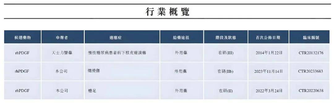 (圖 / 中國PDGF藥物管線的詳情(來源:華芢生物招股書))