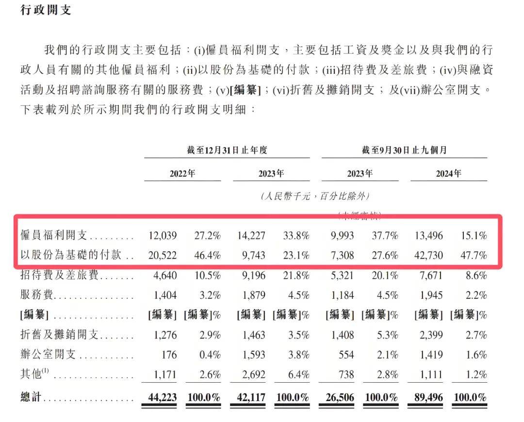 目前,公司的行政人員51人,研發費用人員僅37人。這其中,行政人員薪酬(包括以股份為基礎的付款)佔據了大部分的行政開支。