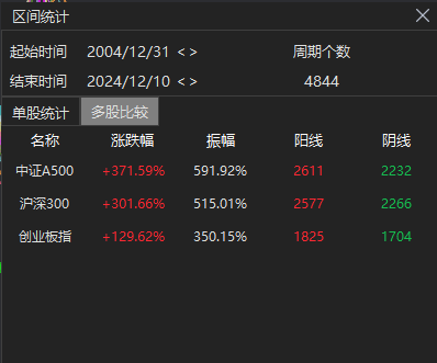而且從歷史業績上來看,成長與價值兼具的佈局策略有着很高的勝率。自基日以來,A500指數累計漲幅達到371.59%,顯著跑贏傳統價值指數和成長指數,如滬深300和創業扳指,顯示出其基本面穩健的價值和增長潛力。