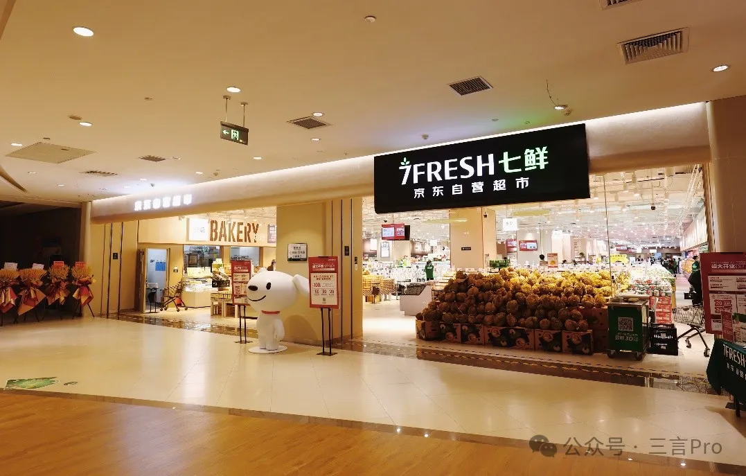 七鮮超市,則是京東即時零售的另一重要佈局。11月1日,京東宣佈旗下自營超市京東七鮮與前置倉完成融合。京東七鮮超市也學習山姆的供應鏈管理經驗。例如七鮮超市中有不少自主品牌,很多農產品產地都是產自七鮮直采地。