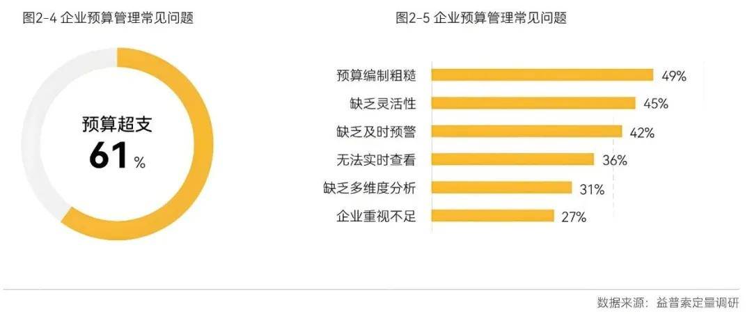 其次,預算管理失控成為又一棘手問題。預算管理是企業消費管理的基石,然而,白皮書調研結果顯示,有61%的企業表示存在預算超支的問題。