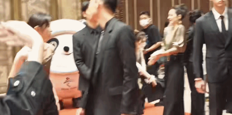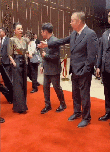 伸手對章子怡作邀請狀,結果人到跟前卻又一把推開。