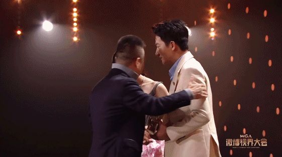 當這次鏡頭主角不是馮導時,他逃不掉了,比起握手又多給了個擁抱和親吻。