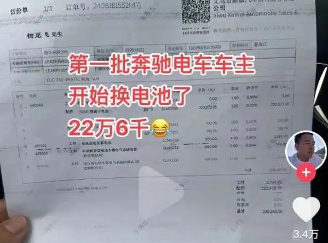 前不久正好有位國內的Model S車主,碰到了跟芬蘭炸車老哥一樣的電池故障,特斯拉售後報給他的換電池費用在20萬元以上,比國外還要貴。當然,貴也不是特斯拉一個品牌問題的,大家都貴上天了,有位奔馳EQC車主,掏出了22.6萬的換電池賬單,老款寶馬5系的插混版,換電池費用更是高達26萬元。國產也沒便宜到哪去,身為平價車型的威馬EX5,電池包要價10萬,微型車零跑T03,都要花5萬才能換電池。