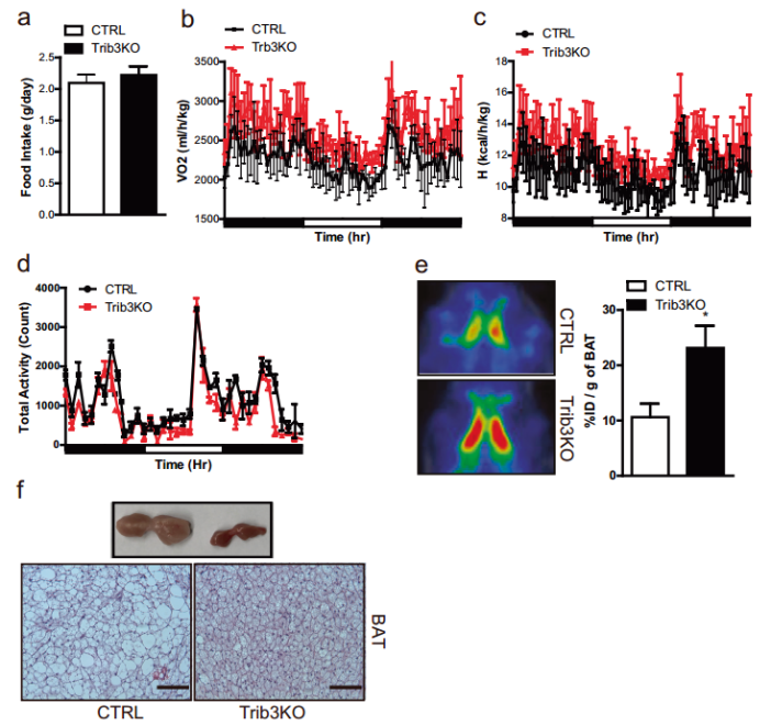 圖注:Trib3基因敲除小鼠的能量消耗和BAT活性
