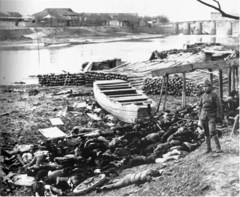 “在下關碼頭,有數千敵兵被我方射殺,其屍體脹鼓鼓地浮在江面上”。