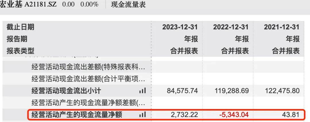 報告期內,宏業基淨利潤累計2.05億元。同期,公司經營活動產生的現金流量淨額累計為-2567.01萬元,二者相差甚遠。