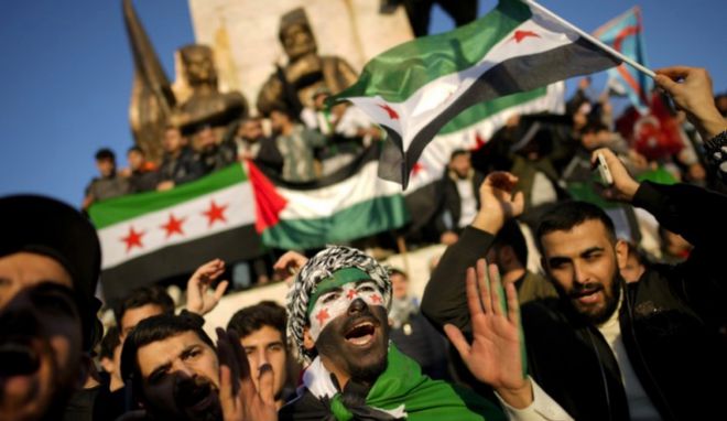 敍利亞人慶祝政府更替