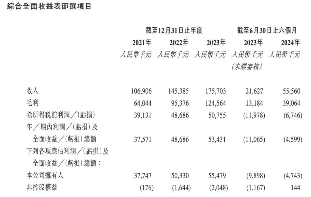 招股書顯示,賽目科技2021年、2022年、2023年以及2024年上半年(以下簡稱“報告期內”),收入分別約為1.07億元、1.45億元、1.76億元和5556萬元。