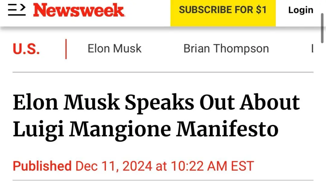而這一全民事件,甚至引發了馬斯克的參與。12月11日,一名 X 用户發佈了行兇者曼吉奧內的一段話:“美國擁有世界上最昂貴的醫療體系,但我們的預期壽命僅排名第 42 位。”