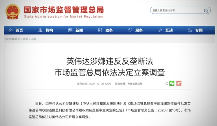 一覺醒來英偉達發現自己天塌了。國家市場監督管理總局發佈了一條公告,英偉達因涉嫌違反《反壟斷法》,被市場監督管理總局立案調查。