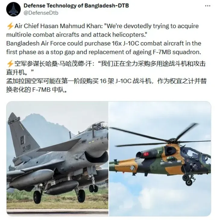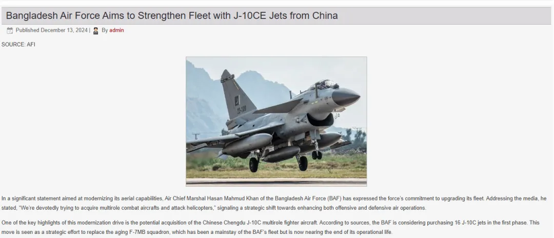 最近社交媒體上流傳的一則消息讓印度媒體破防了——傳聞孟加拉國空軍準備採購中國研製的殲-10C戰鬥機。這不但意味着孟加拉國進一步向中國靠攏,而且印度空軍將在三個方向同時面臨殲-10C的空前夾擊。