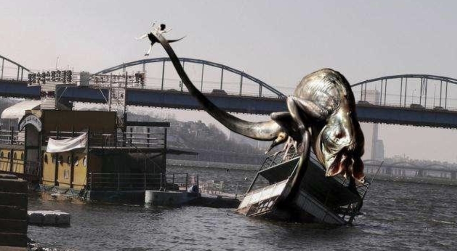 這也迅速落到了怪物的身上。女兒想讓怪物“再吐出一個手機”,卻只看到了被吃掉的人骨,希望變成了極端的絕望,隨後吐出的啤酒瓶更是直接揭穿了女兒希望的虛幻性。而在第二部分中,奉俊昊更是在其內部製造了希望的生與滅。此前,女兒用衣服系成了向上攀爬的工具,象徵着“脱離悲劇底層的階層躍升”,卻始終難以夠到,衣服本身就成為了可望而不可即的虛幻希望。而在第二部分中,女兒用啤酒試探怪物的狀態,對方似乎沉睡,從而萌生了踩着怪物攀爬的念頭。然而,啤酒給予的必然是泡影,女兒的攀登也在鏡頭的設計中“生而覆滅”--鏡頭停在了她抓住衣服的時刻,鬆開手後卻依然凌空,隨後才發現怪物早已抓住了她,構成了第一次的“虛幻希望”,隨後怪物將她放到地上,其瞬間的平靜似乎帶來了“被饒恕”的第二次希望,隨即又在怪物的暴起中破滅。