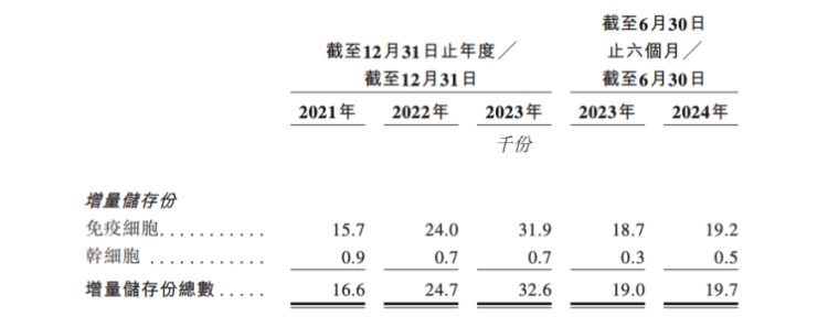 2021年-2023年,上海細胞療法集團增量存儲數量分別為1.66萬份、2.47萬份、3.26萬份,2024年上半年為1.97萬份,2023年同期為1.9萬份。