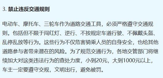 除了上述規定之外,我在網上好看到了即將於2025年開始執行的,電動車、摩托車、三輪車上路的“4禁”與“3嚴查”,其中“4禁”分別是: