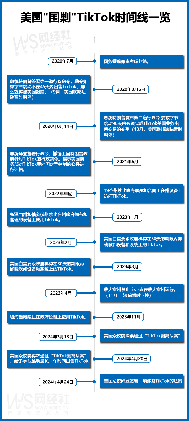 5月7日,TikTok和字節跳動向哥倫比亞特區聯邦巡迴上訴法院提起訴訟,尋求阻止美國總統拜登簽署的涉TikTok法案。TikTok在訴訟中稱:“這是國會歷史上首次頒佈法律,對某個特定言論平台實施永久性、全國性的禁令。封禁TikTok明顯侵犯了1.7億美國人憲法第一修正案權利,“毫無疑問,該法案將迫使TikTok在2025年1月19日前關閉”。