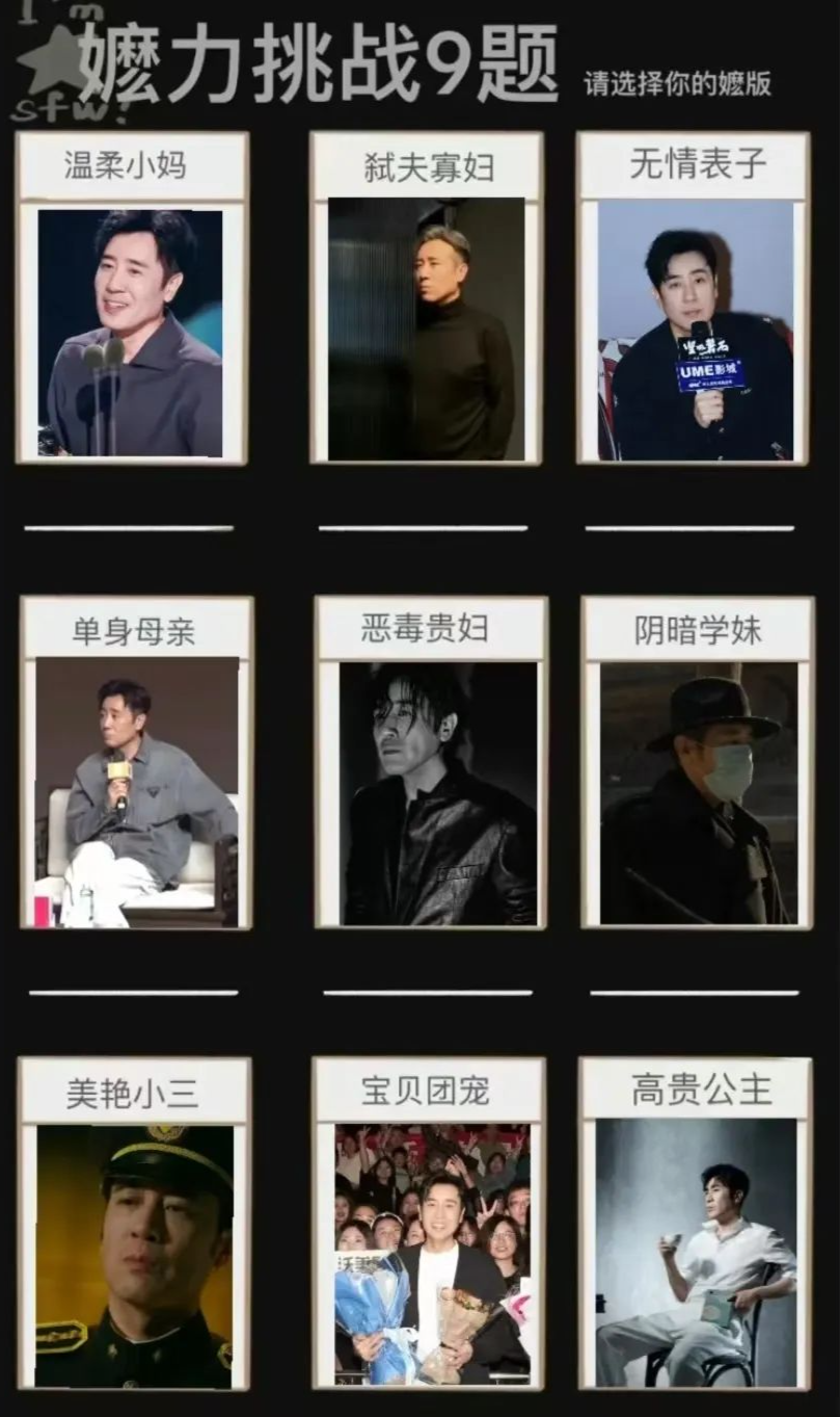 從《覺醒年代》到《三國》,嬤嬤粉越嬤越起勁。更有網友製作“嬤力挑戰9題”,製作了温柔小媽、弒父寡婦、陰暗學妹、寶貝團寵等“嬤版”,將於和偉的不同照片放入其中。這些不同的女性人設,即是嬤嬤粉對男藝人形象的重塑。