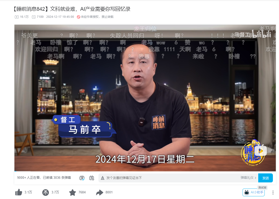 但畢竟沒有做出長視頻進行評點。當然也沒有這個機會了。不過接下來馬逆睡前消息肯定會做2024年新聞總結,回顧過去一年重大新聞,讓我選的話,2024年發生的幾個系列事件,馬逆睡前消息肯定不會錯過。