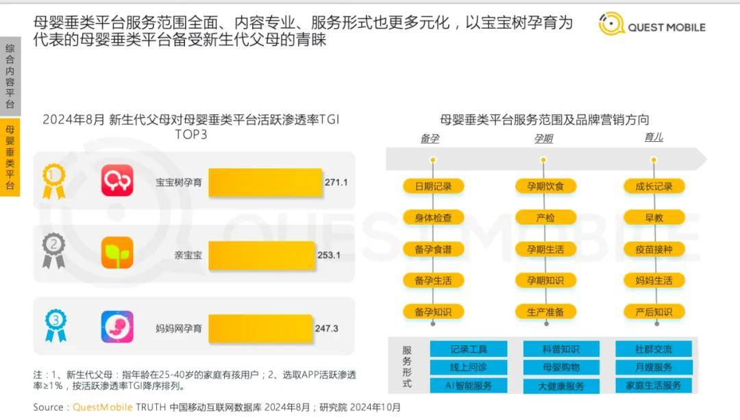 根據QuestMobile提供的《2024年母嬰行業發展及營銷趨勢洞察報告》顯示,新生代媽媽用户在該平台的佔比達41.5%,顯著高出行業均值12.2個百分點。