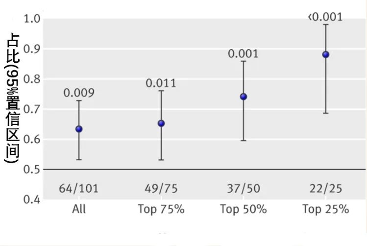 圖注:雙胞胎中感知年齡大的先去世的概率隨着感知年齡差異的增大而增大[4]
