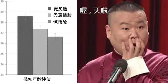看上去最友好的微笑也同樣看上去年輕嗎?不,2018年的一項研究表示,相比微笑,面無表情更顯年輕,而驚愕表情才是三種表情中的年輕之王。懂了,想要“裝嫩”,保持驚訝就行[15]。
