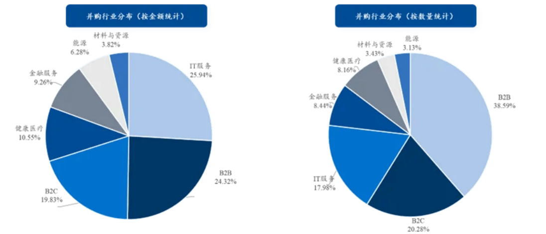 從行業來看,2024年第三季度這些併購企業主要分佈於B2B、B2C及IT服務等軟件及服務領域,在原本的總併購金額上分別同比增長了9。78%、35.92%和46.01%。另外,健康醫療的併購數量及金額依舊在緩慢增長,2024年第三季度的併購金額同比增長了4.00%。
