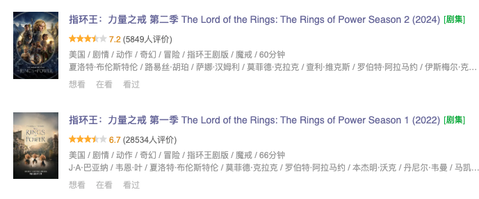 △ 《指環王:力量之戒》國內口碑差強人意