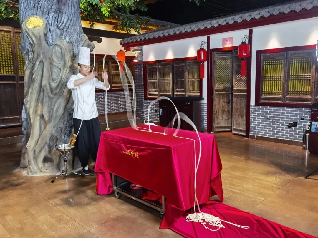 2022年8月31日,山西面食博物館的高級面工閆錦超表演“舞面”