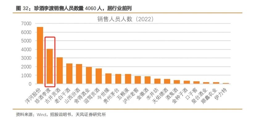 **要推進這個戰略佈局,拉動銷量增長,經銷商建設就尤為重要。**在前文就已經提到,珍酒李渡在銷售隊伍上的成本投入很大,但從實際結果來説有些差強人意。