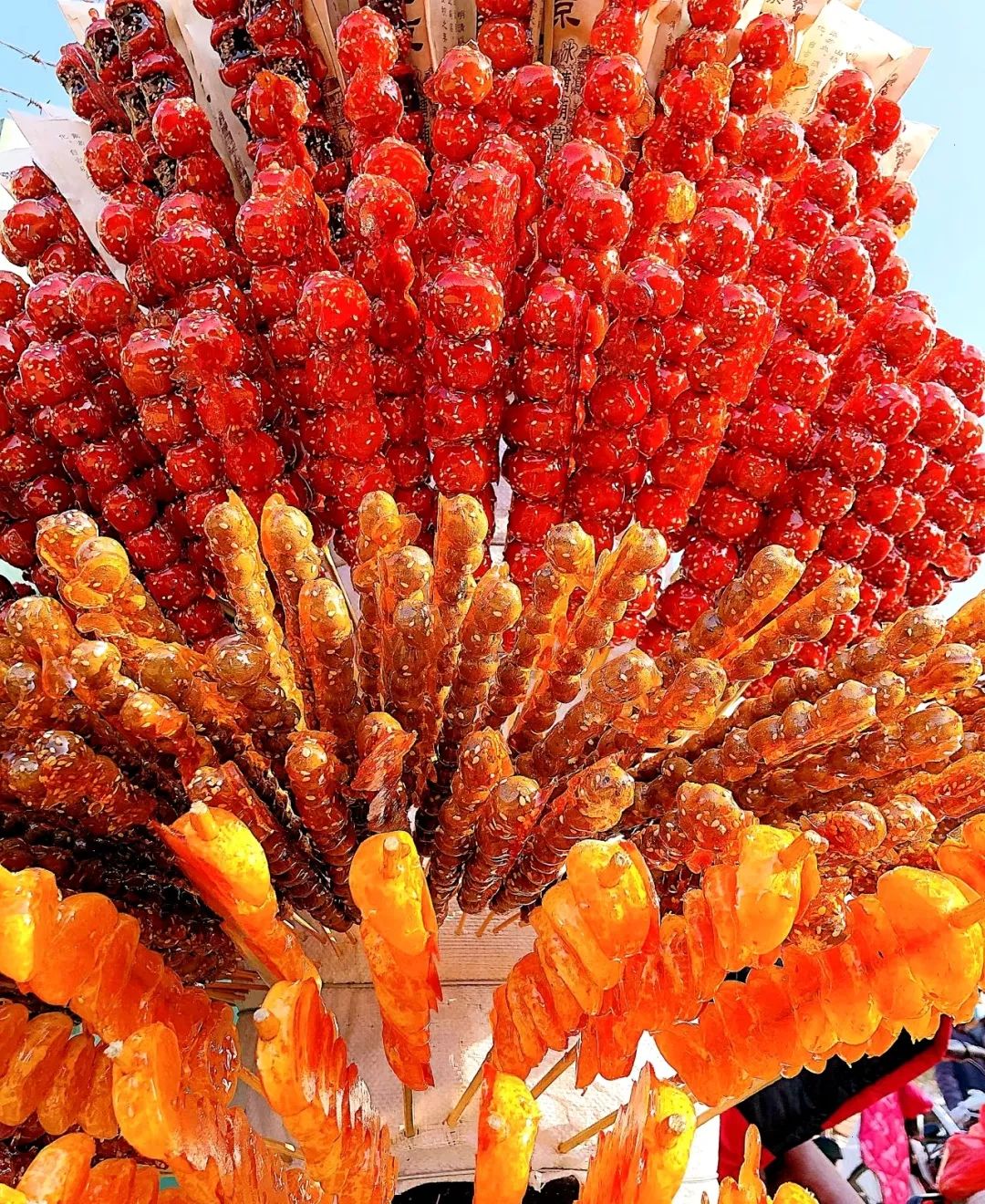 臨沭的曹窪大集上,今年65歲賣冰糖葫蘆的李阿姨,攤位前幾乎每天都擠滿了人。她彎着腰,不緊不慢地用竹籤穿着一顆顆山楂,熟練地在鍋裏翻滾,直到糖漿包裹着果實,變得脆而甜。