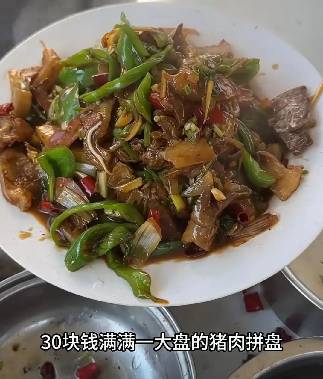“大集上經典的炒菜,真是太多了。山藥燉豬舌頭、辣炒肥腸、乾煸豬肺……尤其是爆炒豬雜,30塊錢,滿滿一大盤,豬身上的各個部位來個大雜燴,好吃又便宜。”
