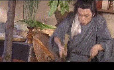 《手機》裏他用嘴巴抽出大哥大的天線。