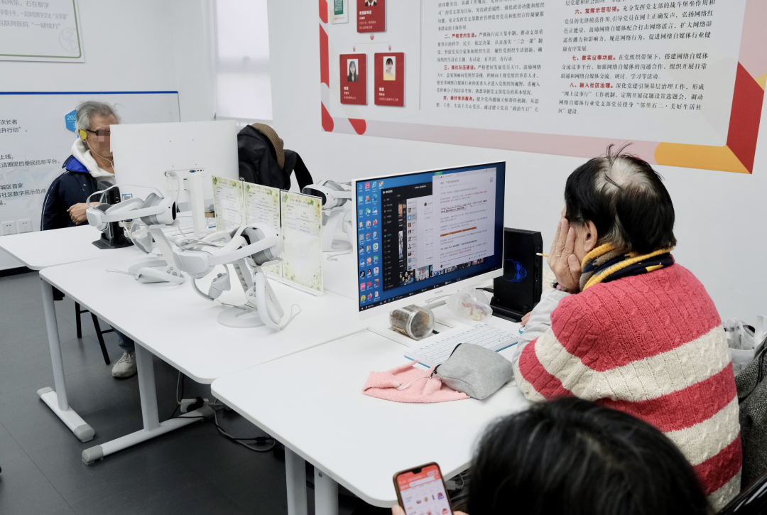 負責人告訴我早在2019年,作為黨羣服務中心的網絡自媒體,起初周邊很多老年人不懂怎麼使用手機怎麼用微信聊天,都是來這裏慢慢教導講解