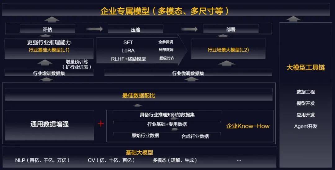 第二,用基礎大模型+工具鏈+企業經驗,構建企業自己的專屬模型。