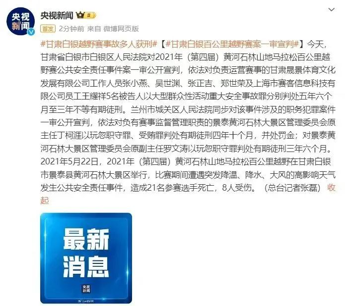 2021年的甘肅白銀越野賽就因遭遇極端天氣,以及運營公司組織管理方面的不規範,最終導致21名參賽選手死亡,8人受傷。作為賽事運營單位,根據甘肅晟景體育文化發展有限公司在工商系統登記的2020年報顯示,公司繳納城鎮職工基本養老保險的人數為0人,涉嫌串通投標,相關人員被依法追究刑事責任。